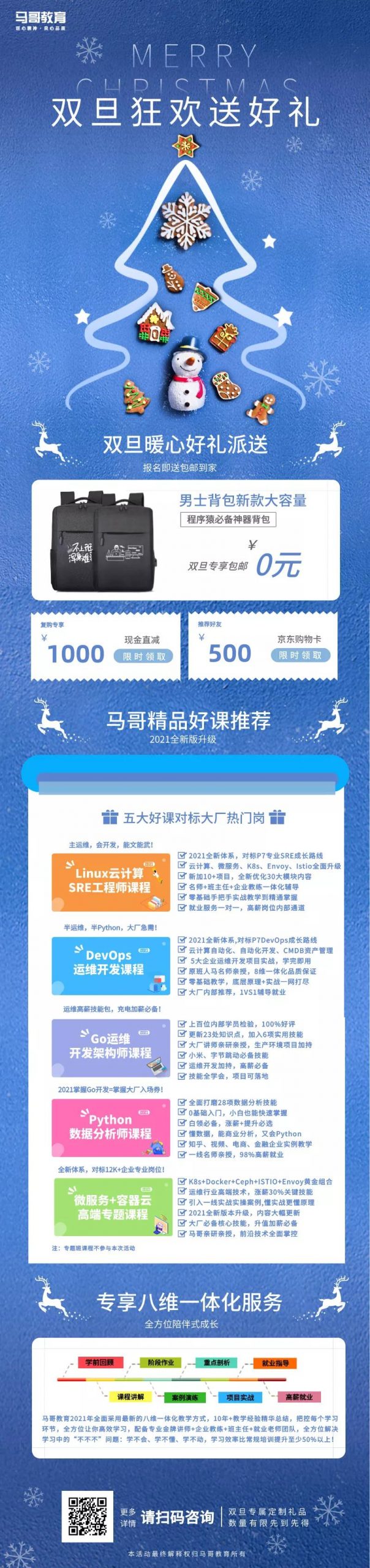 包邮到家!专属定制背包、京东购物卡!马哥教育双旦狂欢送好礼!