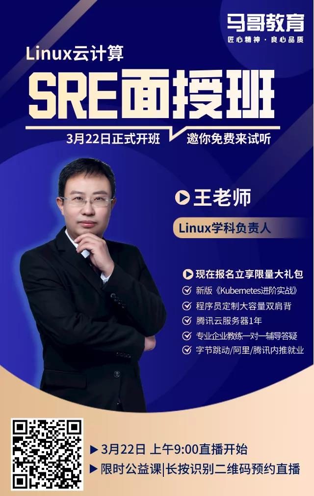 机会来咯!3月22日,Linux云计算SRE面授班开班当天我们会开通网上直播试听通道,欢迎大家预约学习!