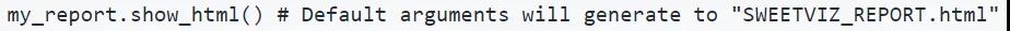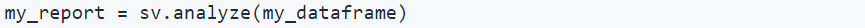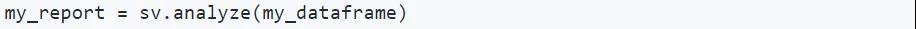 sweetviz使用的原理是,使用一行代码,生成一个数据报告的对象(其中,my_dataframe是pandas中的DataFrame,一种表格型数据结构):![]()