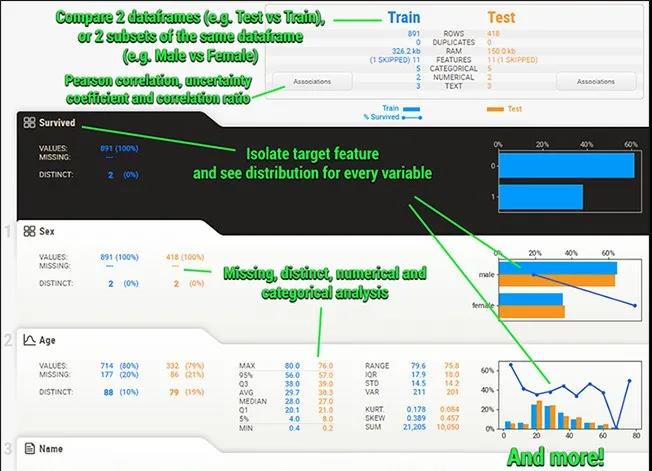 sweetviz是一个基于Python编写的数据分析软件,只要掌握3种函数用法,一行Python代码就能实现数据集可视化、分析与比较。