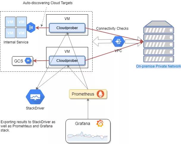 能与Prometheus和Grafana等开源监控系统集成。Cloudprober也可以导出探测结果。 -
