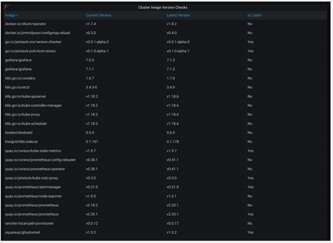 这是一个Kubernetes工具,可以帮助你查看集群中运行的镜像的版本。该工具还允许你在Grafana仪表板上,以表格查看镜像版本。 特征: