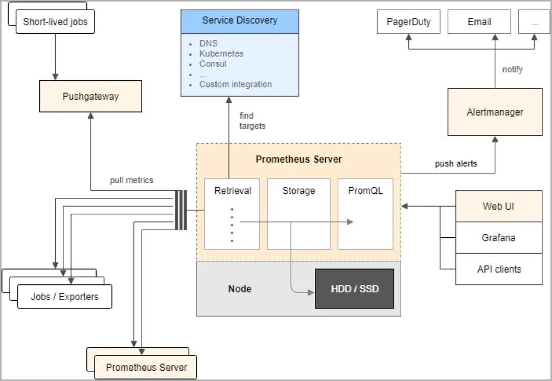 Prometheus是Cloud Native Computing Foundation项目,是一个系统和服务监控系统。它在特定时间从已配置的目标中提取指标,测试规则并显示结果。如果违反了指定条件,它将触发警告通知。 特征: