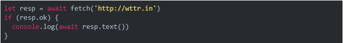 接下来,你需要将你的脚本编写在带有.mjs扩展名的文件中,以便能够await在顶层使用。如果你喜欢.js扩展名,可以将脚本包装为void async function () {...}()。