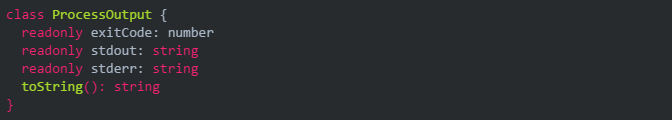 使用child_process包中提供的exec函数可以把字符串当做命令执行,并返回Promise<ProcessOutput>对象。