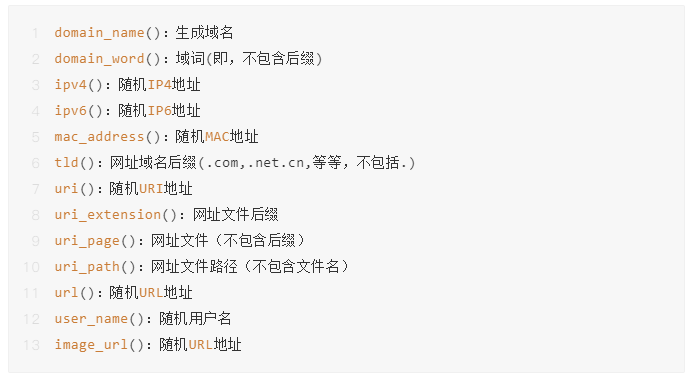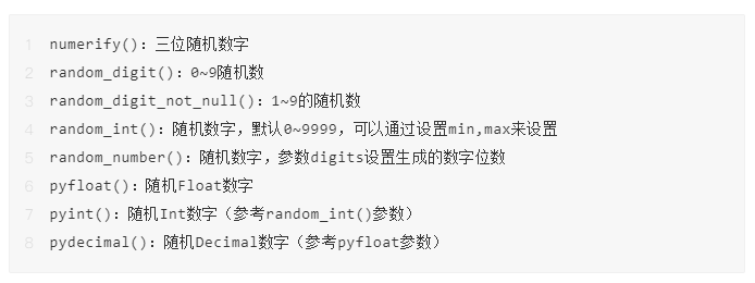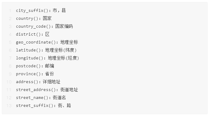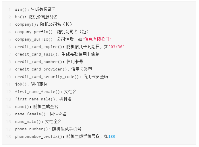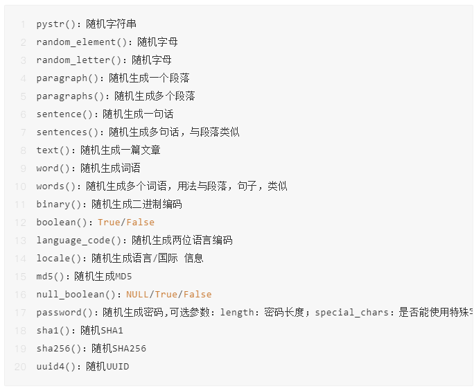 参数 locale:为生成数据的文化选项(语种),默认为 en_US,只有使用了相关文化,才能生成相对应的随机信息