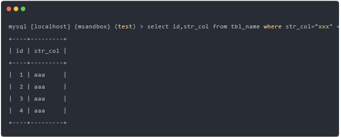 我们发现,这个SQL将str_col='aaa'的记录也查找出来了,为什么呢?