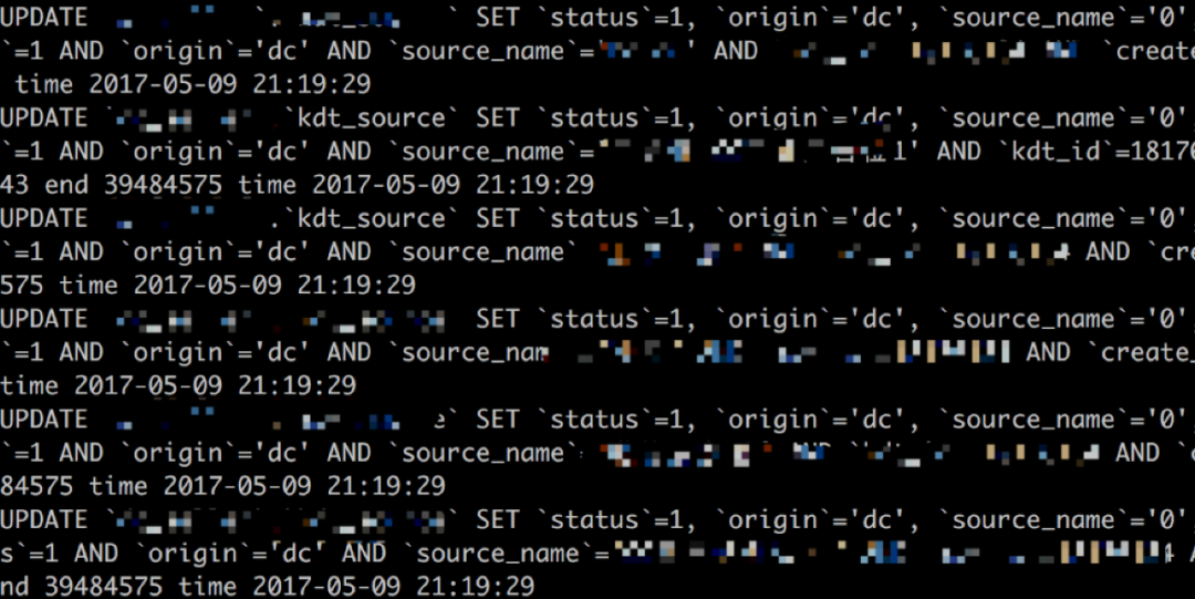 我赶紧登上服务器,查看了这段时间的binlog,发现了大量的update tablename set source_name=0的语句,利用binlog2sql进行了解析。