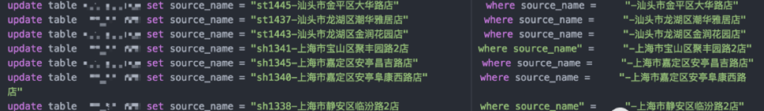 然后开发执行了剩下的SQL,都是和上面的SQL一样,将地址进行更新。执行完成后,开发懵逼了,发现source_name都变成了0,开发赶紧给我打电话说: