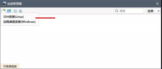 然后出现如图所示的功能菜单,可以连接linux服务器和windows远程桌面,这里我们先点击linux服务器