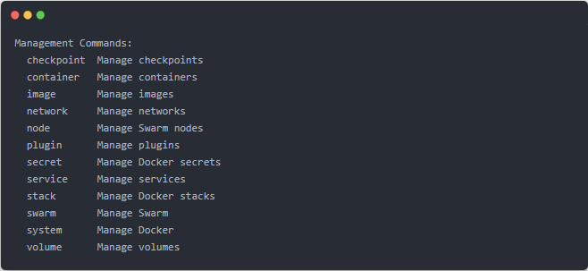 打造的这个CLI是RESTful的客户端, 在RESTful里面以资源(Resource)为核心,因此客户端也需要以资源的形式表现, 比如Docker的 Management Commands: