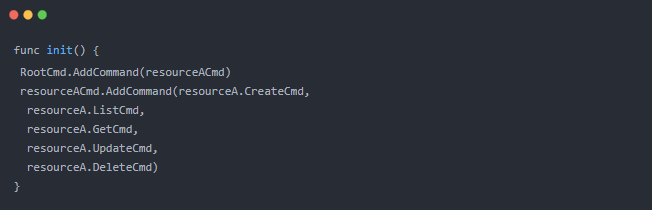 为每一个资源添加5个基础的操作:get, list, create, delete, update。另起一个resourceA的包,实现这些方法,添加到子命令即可, 比如: