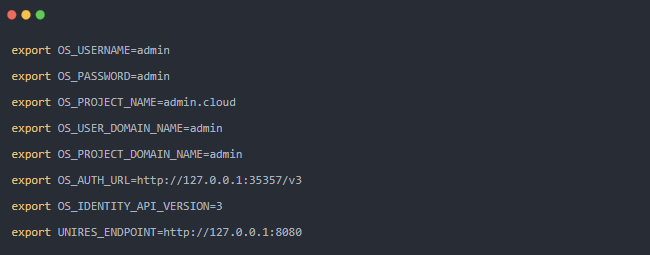 和使用openstack一样,你需要有一个admin_openrc 用于导入环境变量