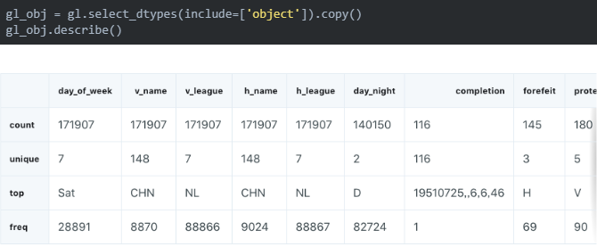 下面我们总结了一些重要的列,但如果你想了解所有的列,我们也为整个数据集创建了一个数据词典:https://data.world/dataquest/mlb-game-logs/workspace/data-dictionary。