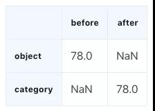 最后,让我们看看在将这一列转换为 category 类型前后的内存用量对比。