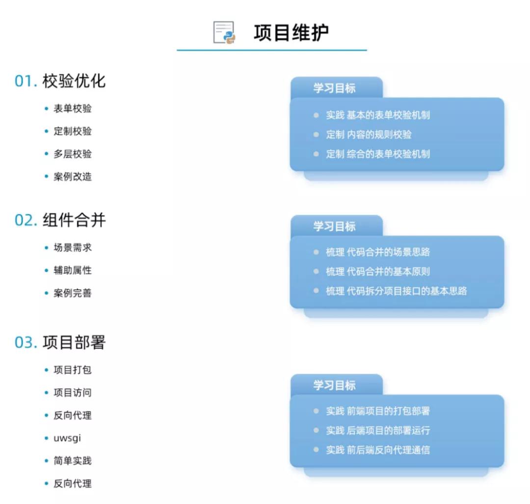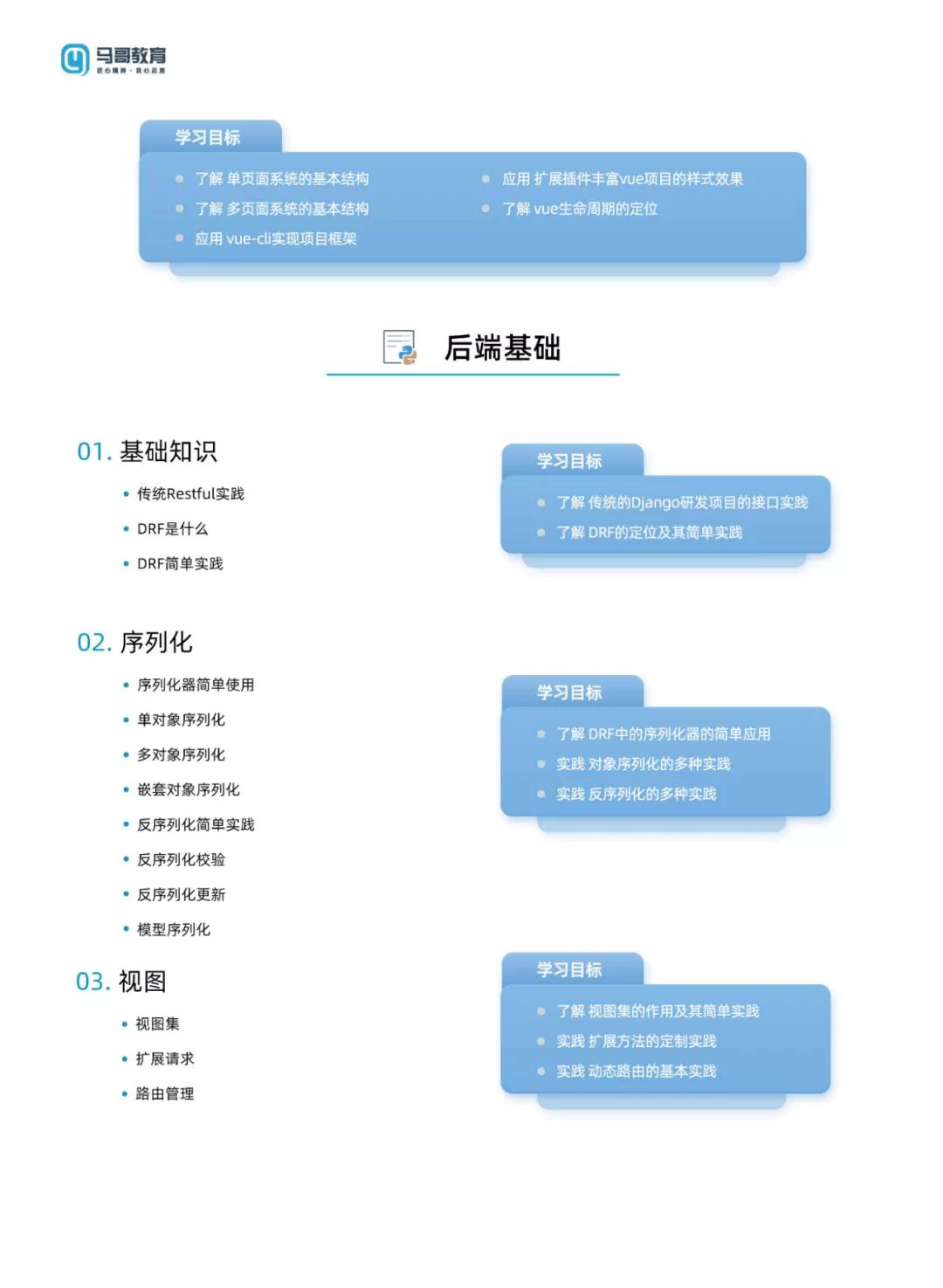 让学员掌握常用Web应用技术的同时,学习使用Django REST framework与Vue-cli。