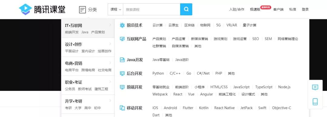 项目借鉴"腾讯课堂"的设计思想,提供在线课程的学习平台。该平台为广大喜欢学习和深度学习的人提供在线学习服务 ,以用户任务为导向,通过多种在线学习的形式,比如直播、录播、文章、考试、问答等,了解后应用并熟练掌握相关专 业技能。