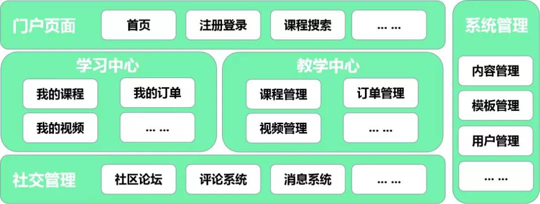 学习中心(视频播放) - 教学中心(视频管理、音频转换、视频处理、视频发布) - 系统管理(页面管理)