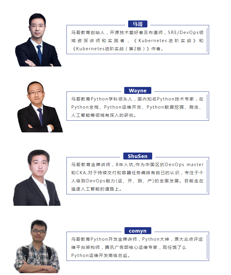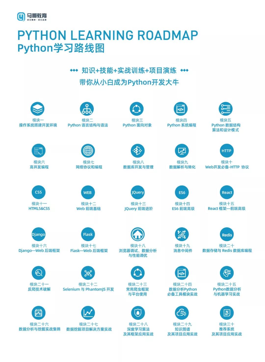 马哥教育《资深Python全能工程师》课程对标阿里P6,涉及Python基础高级进阶,自动化+全栈+爬虫+人工智能,四大就业岗位一网打尽,让你从0开始蜕变为年薪30万的Python全能人才。