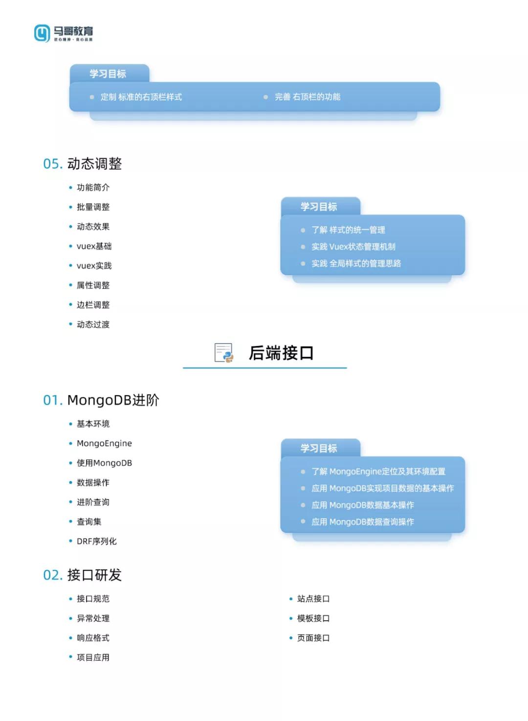 课程涉及7个阶段:项目启动、前端基础、后端基础、后台框架、后端接口、页面管理、项目维护。