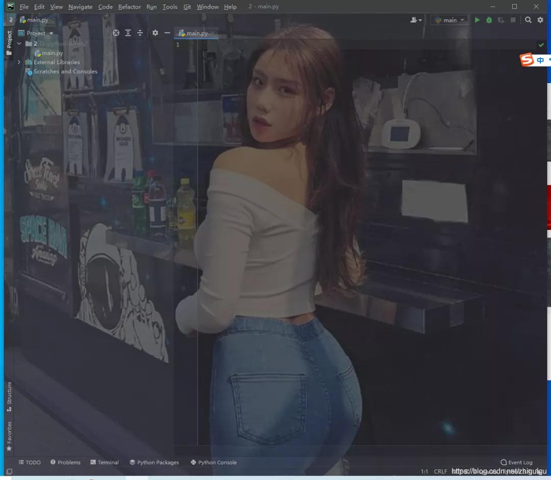 这个算是个附加功能吧,可以给自己的pycharm设置个性的背景,看个人需要,想设置的可以设置一下,毕竟写代码的时候看英文和数字也挺累的,偶尔看点别的也是可以的,比如自己的女朋友。