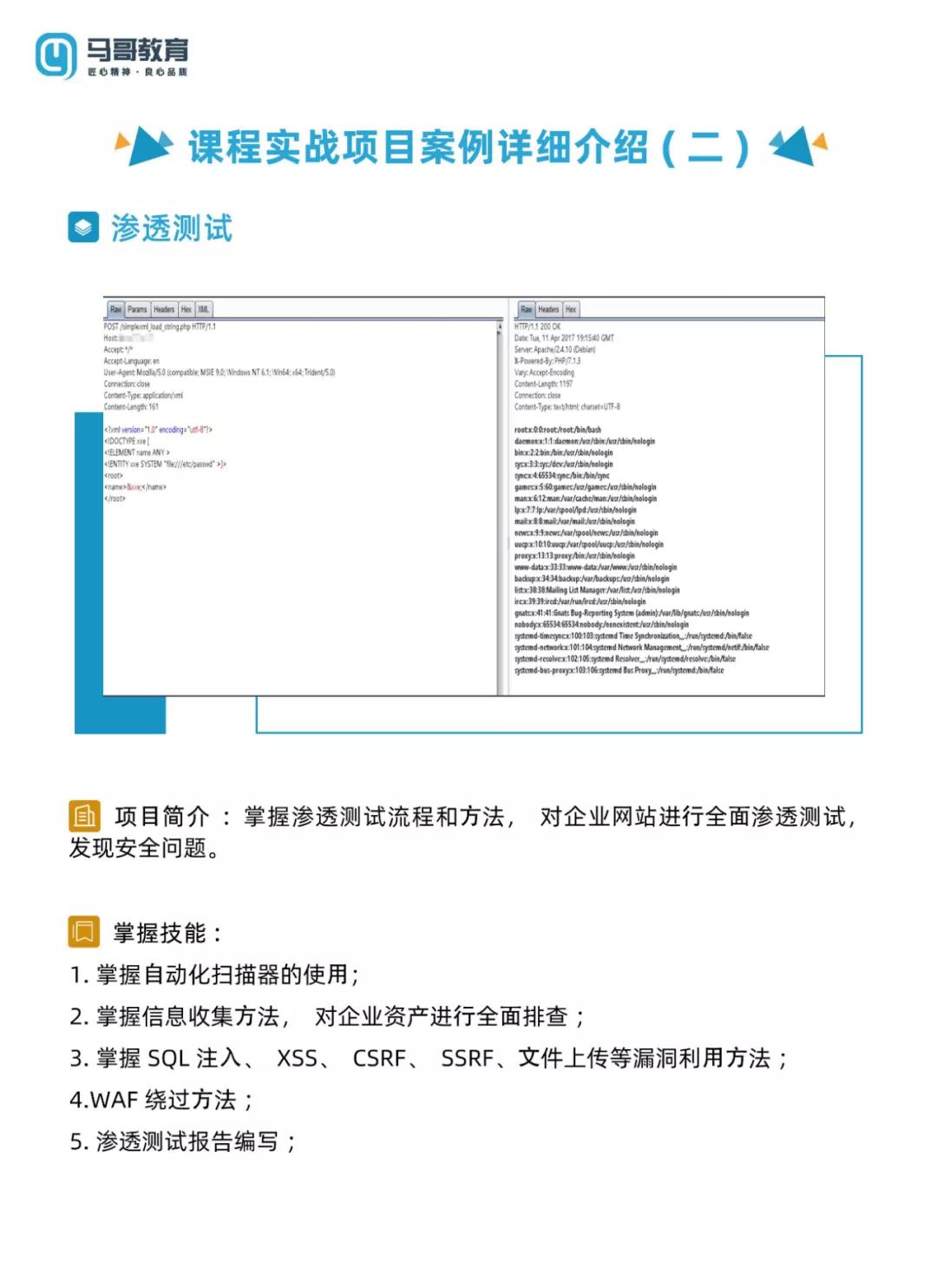 为了帮助更多的朋友学习网络安全知识,培养更多专业网络安全人才,马哥教育特此推出【五维一体高薪安全工程师】课程!