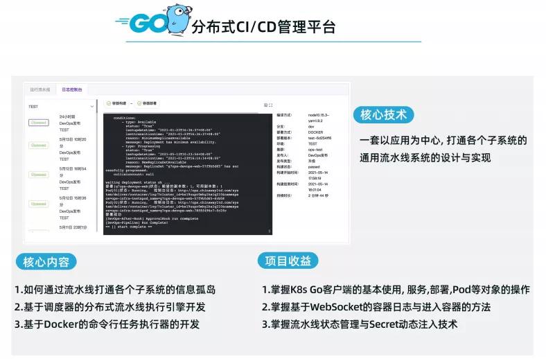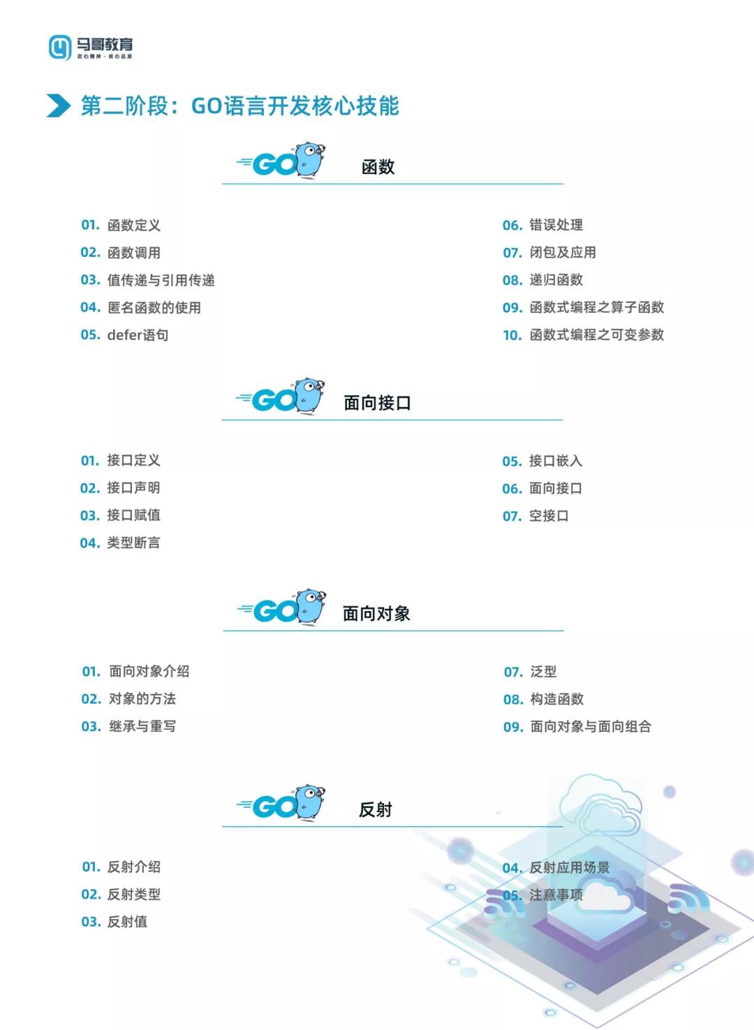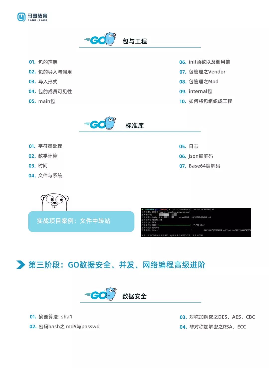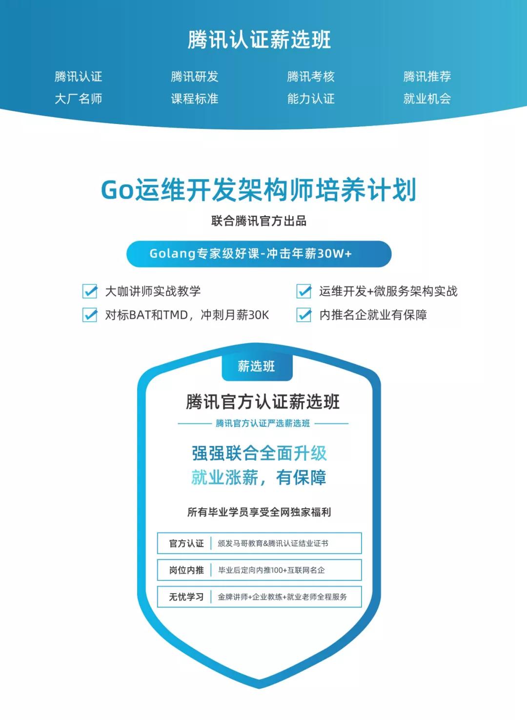 马哥教育2021升级版 - Go 后台开发大厂高薪实战特训班课程,是腾讯课堂 T9 认证目前唯一指定课程。经过腾讯T12级专家三层审核,对教培机构的教学、师资等进行筛选认证,可以帮助大家评估个人当前的职业能力水平,有侧重有阶段地提升专业能力。对比其他机构课程,以更优惠的价格,提供高出5个等级的课程内容。课程以Go后台开发+微服务架构双轨驱动,引入RPC技术、总线与缓存、分布式锁、服务发现、链路追踪、K8s容器等核心技术,学完享受大厂内部岗位推荐福利!课程不仅适合开发工程师学习,运维也很有帮助。