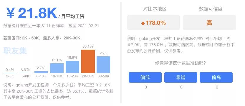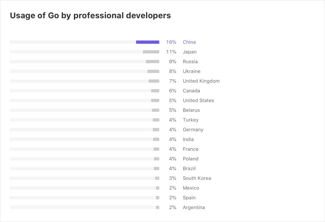 虽然Go语言收获了不少使用者,但也有不少朋友持反对意见。不过,在Go语言发展的十几年里,也有不少鲜为人知的事实,每一个都足以让那些反对者感到惊讶。1、中国是用Go最多的国家全球大致有近110万Go语言开发工作者,这里的110万还不包含那些将Go作为副业和爱好的开发者,其中,110万里有近57万人都来自亚洲。如果要将这个数字细化至国家,那么中国毫无疑问比例最高,全球将近有16%的Go开发者来自中国。2、IT服务和云计算行业是使用Go的热门行业在中国,Go语言主要应用于IT服务行业、金融和金融科技、云计算/平台。其中云计算/平台也让Go语言最大化的突出了自己的优势,这也是Go能和其他语言分庭抗礼的最大原因。随着云计算平台的逐渐成熟,很多公司都选择将基础架构/业务架构云化,甚至所有技术都围绕云来构建。从下面这张云原生技术栈语言组成图中,不难发现,有 63% 的具有统治力的云原生项目都是用 Go 构建的。比如容器技术中Docker和Kubernetes就是用Go语言进行开发的。3、Go语言开发者薪资居高不下另一方面,大厂也越来"执着"于Go人才:在招聘运维,开发,测试人员时,Go技能已成为必考重点,直接影响到职级评定和薪资水平!Go工程师开出的薪资也相对较高。据职友集统计,中国 Go 语言开发工程师的平均月工资为 21.8k 。会 Go 语言的 IT 人,基本等于找到了“财富密码”,能同时收获高薪、话语权、不可替代性和成就感。然而,对在职人员来说,光是应付工作已经焦头烂额,自学一门新的语言谈何容易?残酷的是,如果你无法找对赛道及时破局,那也许你只能在内卷的浪潮下随波逐流,随时都会面临着被市场逐渐淘汰的风险。很多人也已经意识到了,他们也做了挺多准备,如以下一些常见场景:1)多数人,看一些书籍和干货文章来提升自己的认知,但碎片化的阅读和学习让认知只停留在表面,无法落地;2)一些新人小白,误以为认真学完 Go 语言基础就具备了成为一名 Go 语言开发工程师的潜质,殊不知这只是吹起万里长征路开始号角;3)还有人将 Go 作为第二门编程语言,写出来的代码却有着浓重的其他语言的味道。如何在最短的时间提升自己的能力?为了帮助 0~3 岁的 Go 语言新人能够在较短时间内系统掌握 Go 开发的基础能力,顺利入门/转行 Go,成为一个基本功扎实、具备系统级架构师视野、过硬实战项目经验的 Go 高级工程师。我推荐你学习《 Go 后台开发大厂高薪实战特训班》。本课程为升级版 Go 开发课程,对标腾讯 Go 后台专家级架构师体系,课程参考 BAT 及 TMD 技术栈架构,学完后可冲刺月薪 30K 高薪岗位!项目均出自大厂一线,掌握后可写进简历,是跳槽升职加薪的必备案例。课程结束后还会有简历辅导和面试技巧特训课,更有一线大厂岗位内推。