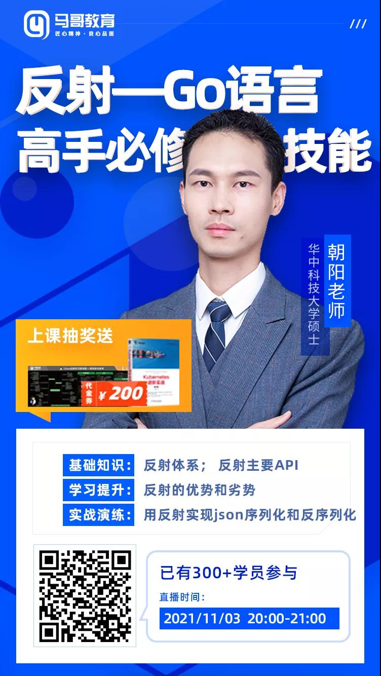 张朝阳,华中科技大学硕士,5年Go语言使用经验,曾用Go开发过工业级的分布式搜索引擎、新闻推荐系统、反作弊系统,著有《工业机器学习算法详解与实战》。如果你迫不及待想要成为一名Go语言高手,请不用担心,在这场知识盛宴中,你将得到意想不到的丰富收获:反射是高级语言里的高级内容,掌握难度比较大,也是不少朋友学习的重难点。本次公开课,将通过json序列化这个例子加深大家对反射的理解,条理性的知识框架更有利于大家掌握。本次公开课特设「现场抽好礼」环节,多重精彩礼品现场透明抽奖,人人均可参与,不仅让你学到知识,更让你赢得好礼。本次公开课将在【视频号】和【腾讯课堂】同步直播,期待你的加入!