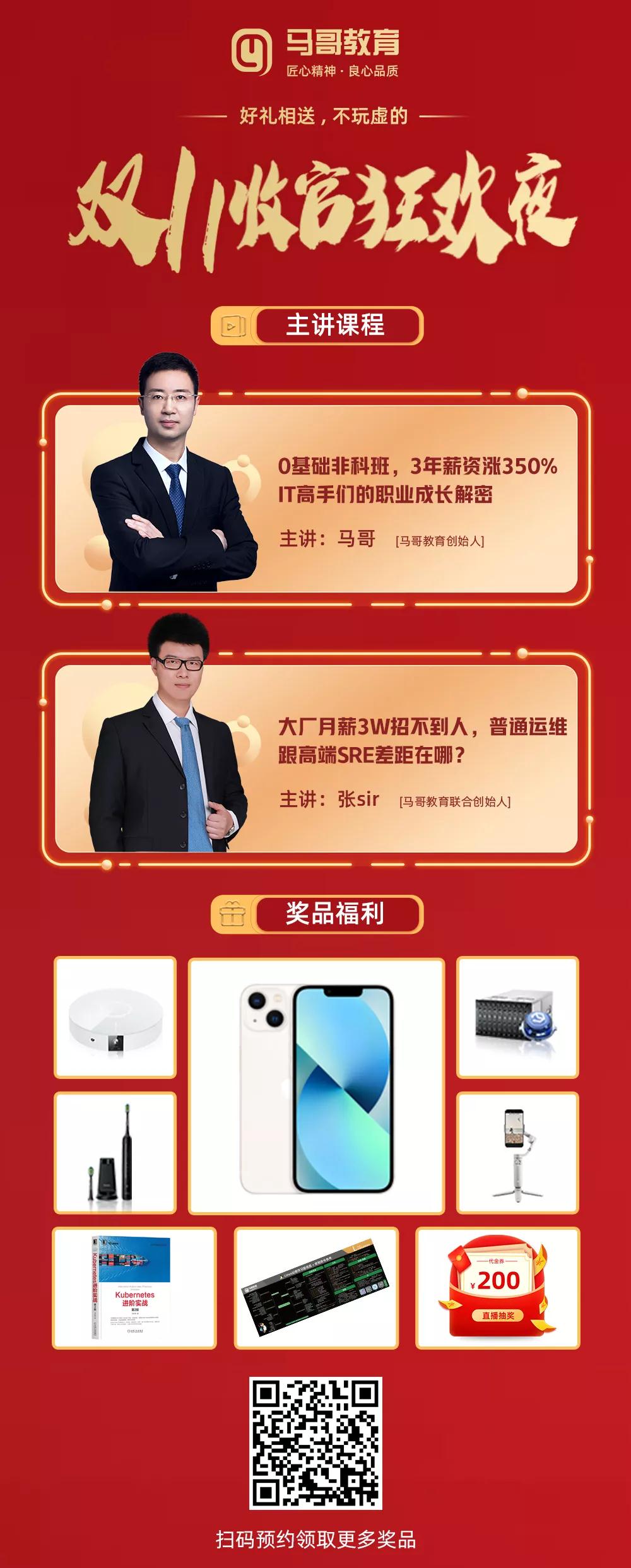 同时也正值我们双十一的活动,到时候会给大家抽一波大奖。Apple iphone 13、坚果G9投影仪、大疆磁吸手机云台、腾讯云服务器、华为智能电动牙刷、《Kubernetes进阶实战(第二版)》、定制技能鼠标垫、课程优惠券,统统包邮送给大家!