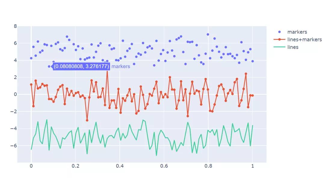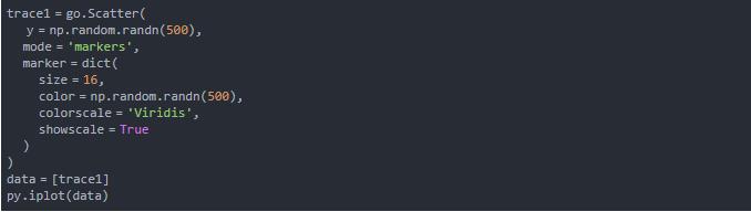 把mode设置为markers就是散点图,然后marker里面设置一组参数,比如颜色的随机范围,散点的大小,还有图例等等。
