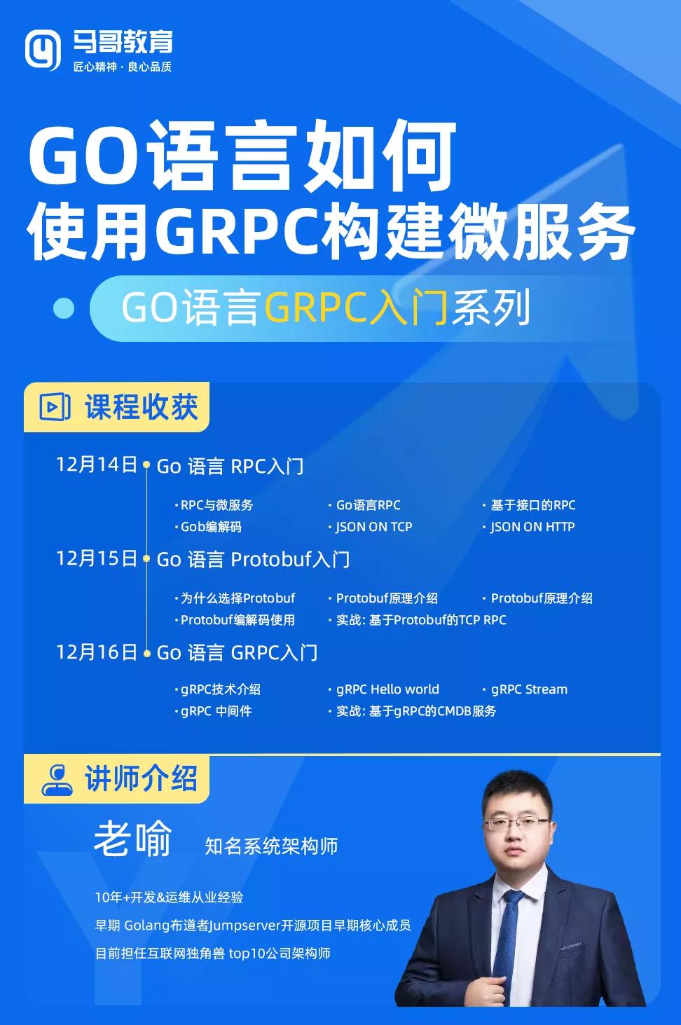 如果你还想系统的学习Go语言RPC知识,那么我真诚的向你推荐,喻老师的《Go语言 如何使用GRPC构建微服务》训练营。本课程循序渐进,从rpc到grpc,从入门到实战,让你深入理解grpc背后的技术。