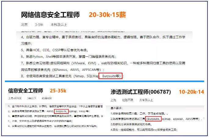 随着岗位JD描写更具体化、更专业化,不少企业在招聘网络安全相关岗位时都会明确标注:熟悉掌握BurpSuite工具。