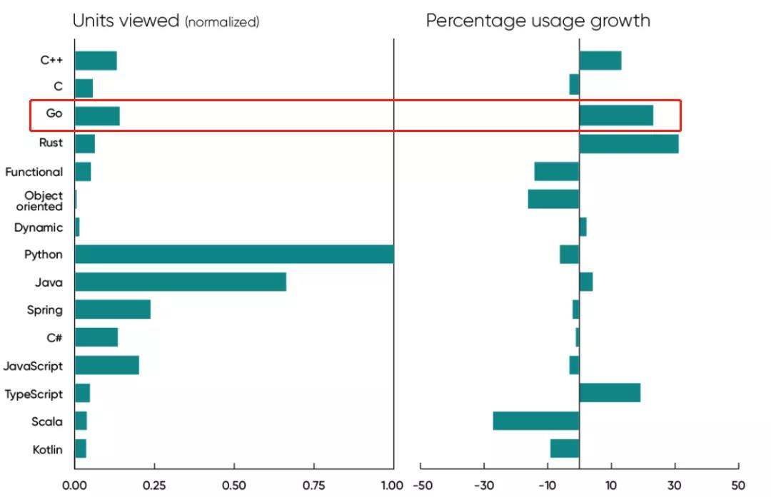 1、自去年以来,有关 Go 的内容使用量增长了 23%