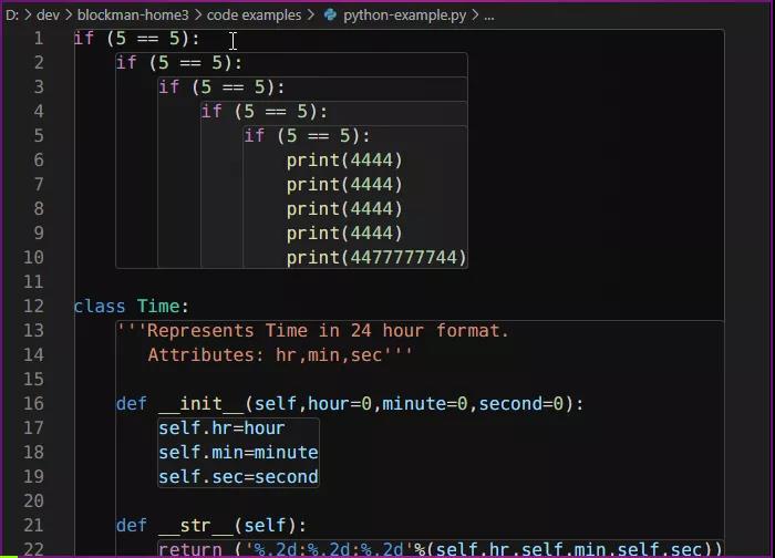 在选中的框内高亮显示嵌套的代码块非常容易。如下展示了利用这款工具显示一层层的缩进: