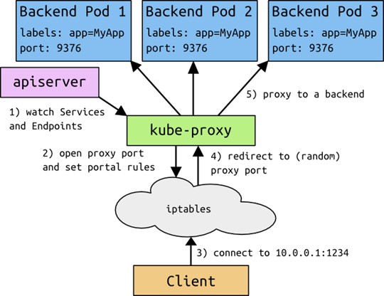 即:当对于每个Service,Kube-Proxy会在本地Node上打开一个随机选择的端口,连接到代理端口的请求,都会被代理转发给Pod。那么通过Iptables规则,捕获到达Service:Port的请求都会被转发到代理端口,代理端口重新转为对Pod的访问