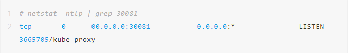 同时,可以看到Service所申请的端口38081被Kube-proxy所代理和监听