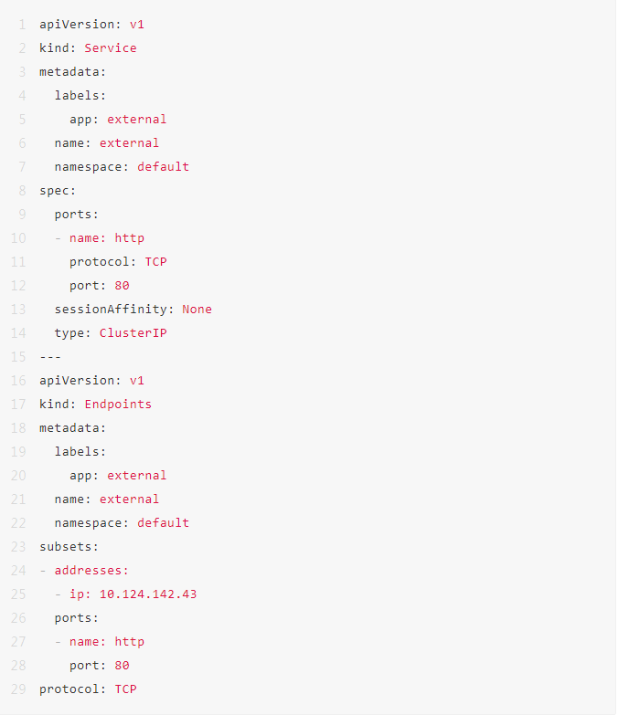 没有selector的service不会出现Endpoint的信息,需要手工创建Endpoint绑定,Endpoint可以是内部的pod,也可以是外部的服务。