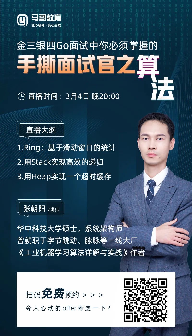 朝阳老师,华中科技大学硕士,5年Go语言使用经验,曾用Go开发过工业级的分布式搜索引擎、新闻推荐系统、反作弊系统,著有《工业机器学习算法详解与实战》。