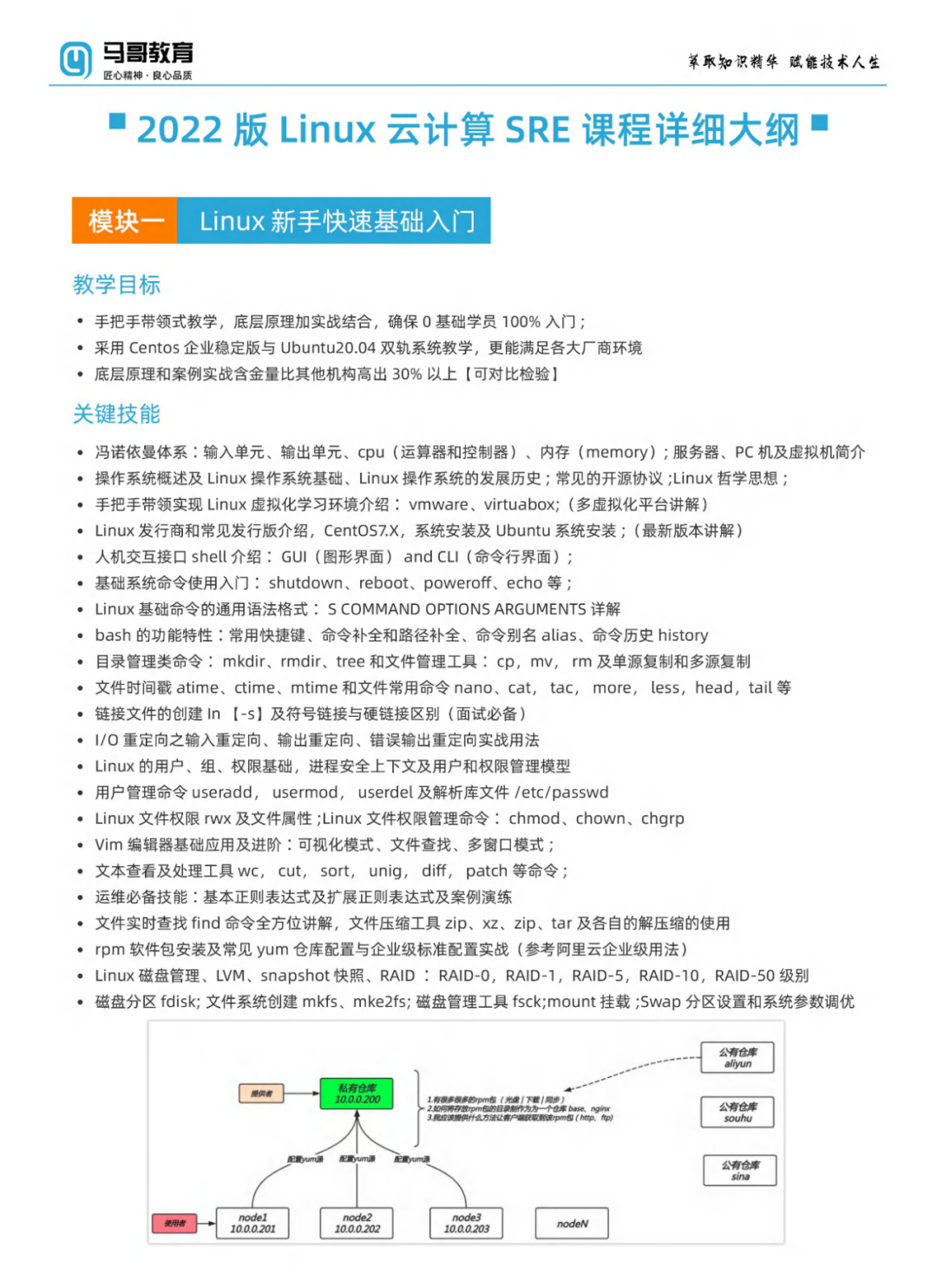 另外,在课程打造方面,《linux云计算SRE高薪工程师》也非常适合0基础转岗和运维提升,课程是马哥技术老师走访100+互联网公司,对其当前技术以及未来发展方向深入调研后,精心打磨出来的,兼具专业技术和大厂项目实战。