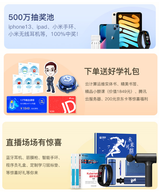 报课不仅能满减、免单,还能抽最新款的iPhone13、Apple ipad、小米蓝牙耳机、按摩器,还有马哥超级大礼包、最火萌宠冰墩墩、连报优惠等.......多达几十个奖品和福利。