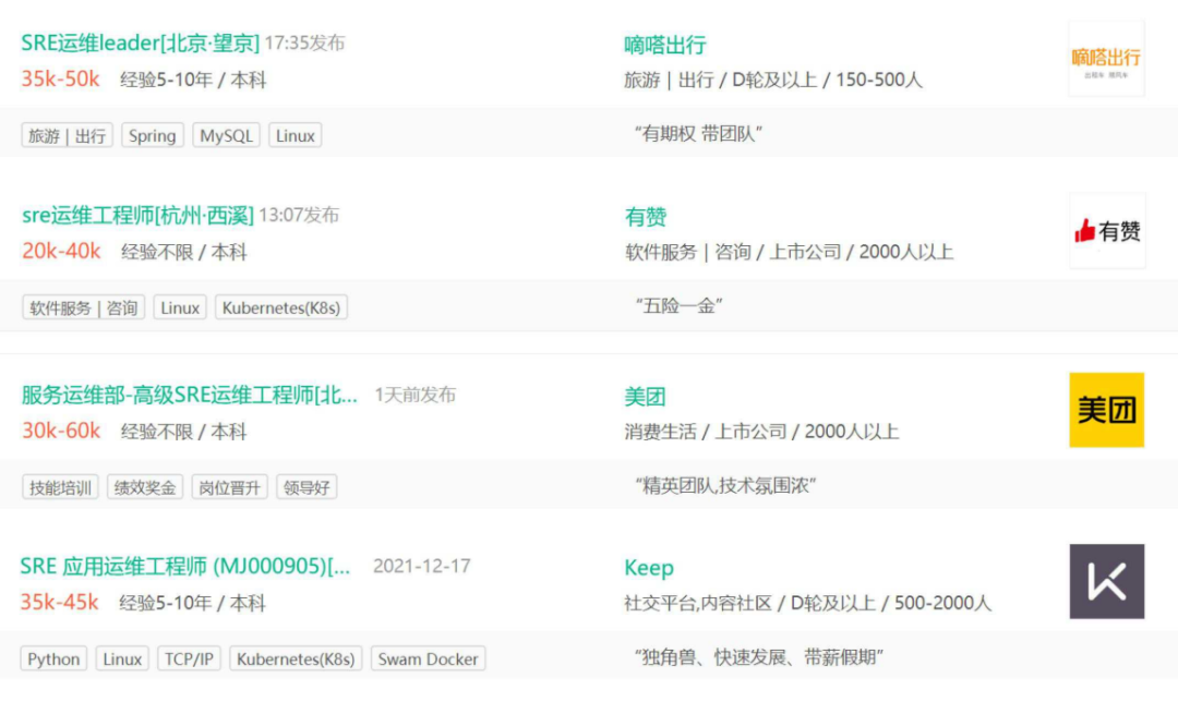 物以稀为贵,但凡工资高的岗位都与市场需求大,人才紧缺有关,SRE工程师也不例外。近几年,随着大数据、云计算、人工智能的不断发展,国内SRE人才缺口逐渐拉大,但是SRE人才却相对稀缺,导致很多公司不得不抬高工资吸引人才。小米、阿里、百度、美团、网易之类的大型互联网公司更是将运维岗变更为SRE岗,明眼人一看就知道这是大势所趋。