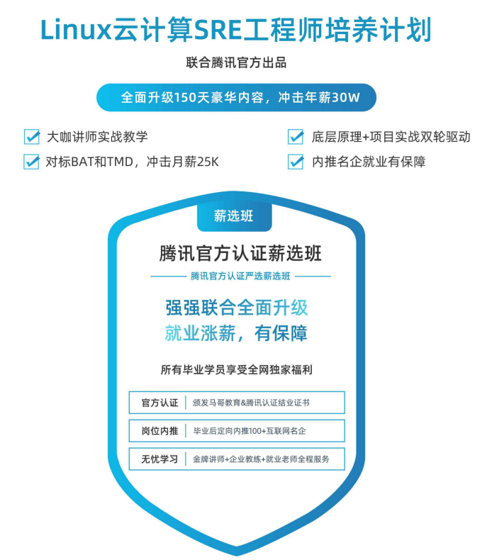 如果这些技能你不会,那就别逼逼了,还是先埋头学习迎头赶上才是上上策!如果你不甘现在的薪资,想往SRE方向发展,那《linux云计算SRE高薪工程师》这门课一定要学。课程由浅入深,通过大量理论知识和互联网大厂实战经验,教你一步步学会SRE工程师必备技能,实现技术进阶,冲刺年薪30W+,0基础转岗,技术薄弱想提升都很适合。