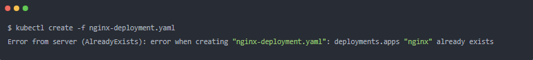 即使 YAML 文件略有不同,您也会收到 “nginx” 已存在的错误。
