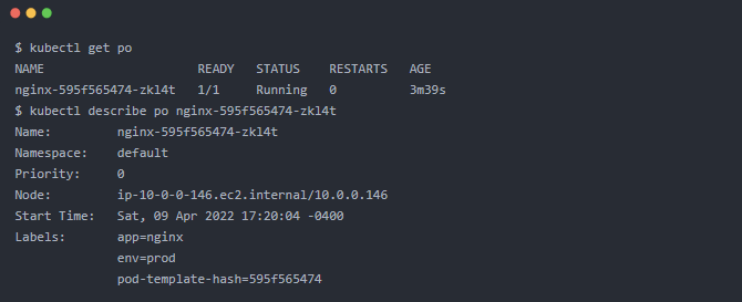 让我们再看一个例子。我们将创建相同的 nginx pod,这一次,让我们通过 YAML 文件来完成: