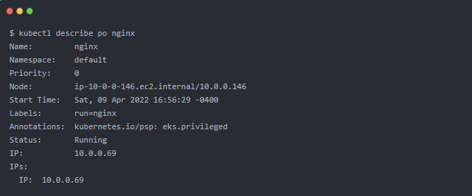 如果您对这个新 pod 执行 kubectl describe 命令,您将看到: