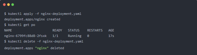 为了演示,让我们使用 nginx Deployment 文件。首先,让我们创建资源: