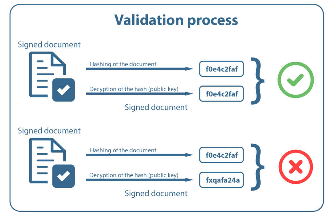 将被解密(被传输)的哈希值与根据该文档计算的哈希值进行比较