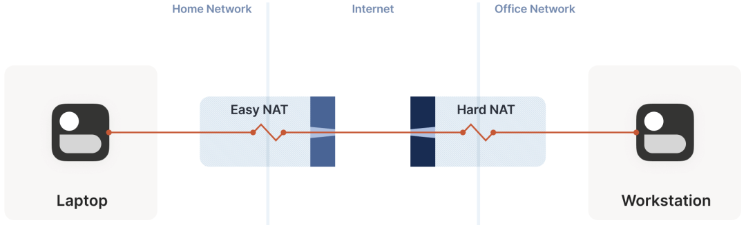 在前一篇文章 How Tailscale Works[2] 中, 我们已经用较长篇幅介绍了 Tailscale 是如何工作的。但其中并没有详细描述我们是 如何穿透 NAT 设备,从而实现终端设备直连的 —— 不管这些终端之间 有什么设备(防火墙、NAT 等),以及有多少设备。本文试图补足这一内容。