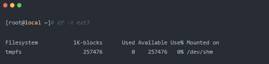 如果要显示不属于的文件系统类型ext3键入使用选项作为 -x。例如,以下命令将只显示除ext3.